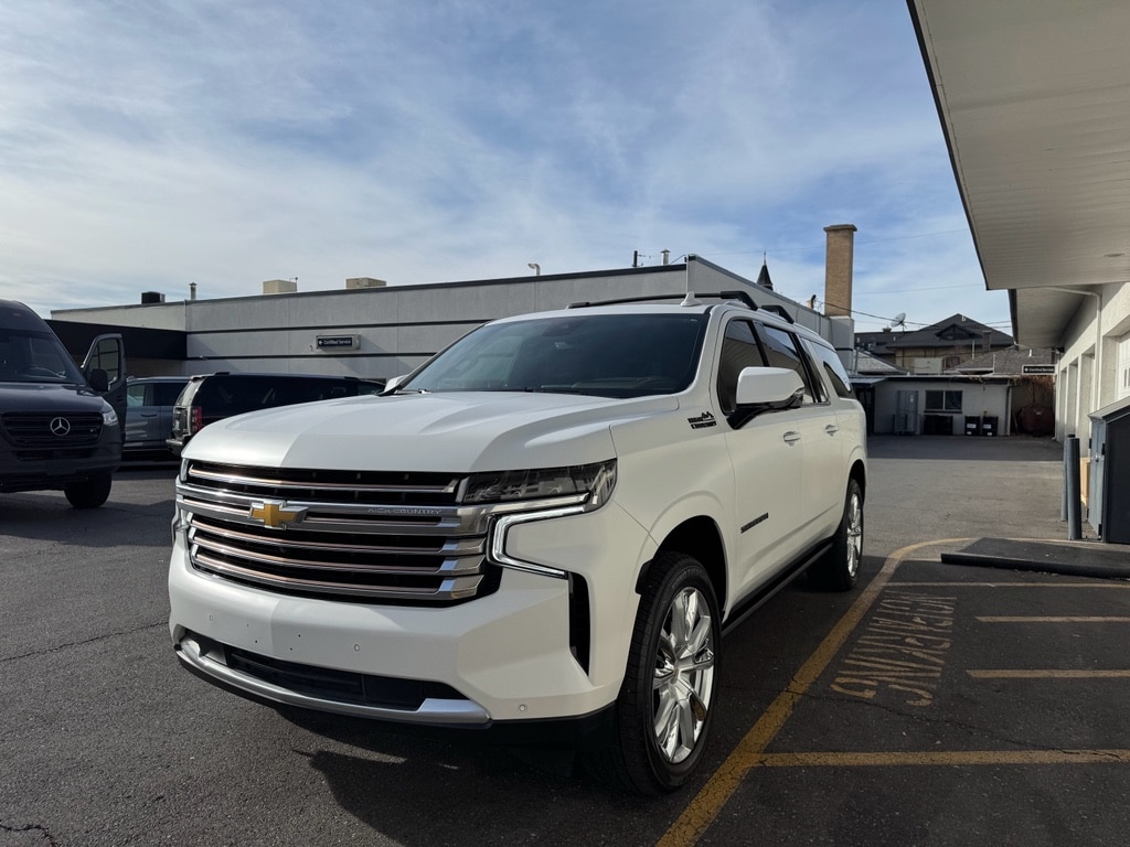 Max Trailering Package: Extra Capacity Cooling System. Advanced Trailering Package: Trailer Side Blind Zone Alert; Smart Trailer Integration Indicator; Integrated Trailer Brake Controller; Hitch Guidance with Hitch View. High Country Deluxe: Dual-Pane Power Panoramic Sunroof; Air Ride Adaptive Suspension; Power-Retractable Assist Steps. Preferred Equipment Group 3LZ: Bright Front and Rear Door Sill Plates; Memory Settings; Perforated Leather Seating Surfaces; Remote Start; 3rd Row 60/40 Power-Folding Split-Bench; Safety Alert Seat; Chrome Door Handles with Body-Color Strip; Hill Descent Control; 6.2L EcoTec3 V8 Engine; Rear Camera Mirror Washer; Inside Rearview Auo-Dimming Rear Camera Mirror; Heated Steering Wheel; LED Daytime Running Lamps; Rear Cross Traffic Alert; Wheels: 22" X 9" Sterling Silver Premium Painted; Driver and Front Outboard Passenger Airbags; Heated Driver and Front Passenger Seats; Wireless Charging; Front Bucket Seats; Universal Home Remote; Color-Keyed Carpeting Floor Covering; Heated 2nd Row Outboard Seats; Hands-Free Rear Power Programmable Liftgate; Chevrolet Infotainment 3 Premium System Radio; 2-Speed Active Electronic Autotrac Transfer Case; 1st and 2nd Row Color-Keyed Carpeted Floor Mats; Enhanced Driver Information Center; Floor Console; Lane Change Alert with Side Blind Zone Alert; Dual Exhaust System; SiriusXM Radio with 360L; HD Surround Vision; Heated and Ventilated Driver and Front Passenger Seats; Wrapped Steering Wheel; Power Tilt and Telescopic Steering Column; 15" Diagonal Multi-Color Head-Up Display; Rear Pedestrian Alert; Bose 10-Speaker Surround with CenterPoint; Magnetic Ride Control Suspension; Infotainment Display; Power Release 2nd Row Bucket Seats; Enhanced Automatic Emergency Braking; 275/50R22SL AS BW Tires; Outside Heated Power-Adjustable Mirrors. Rear Seat Media System. Power-Retractable Assist Steps. Dual-Pane Power Panoramic Sunroof. Air Ride Adaptive Suspension. **Equipment listed is based on original vehicle build and subject to change. Please confirm the accuracy of the included equipment by calling the dealer prior to purchase.**