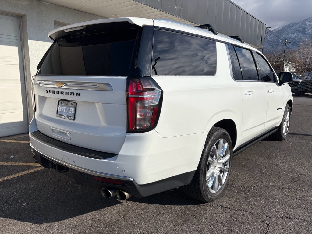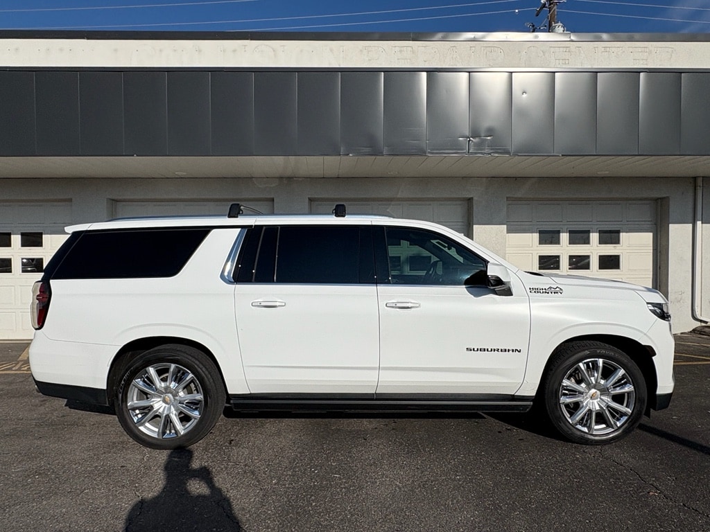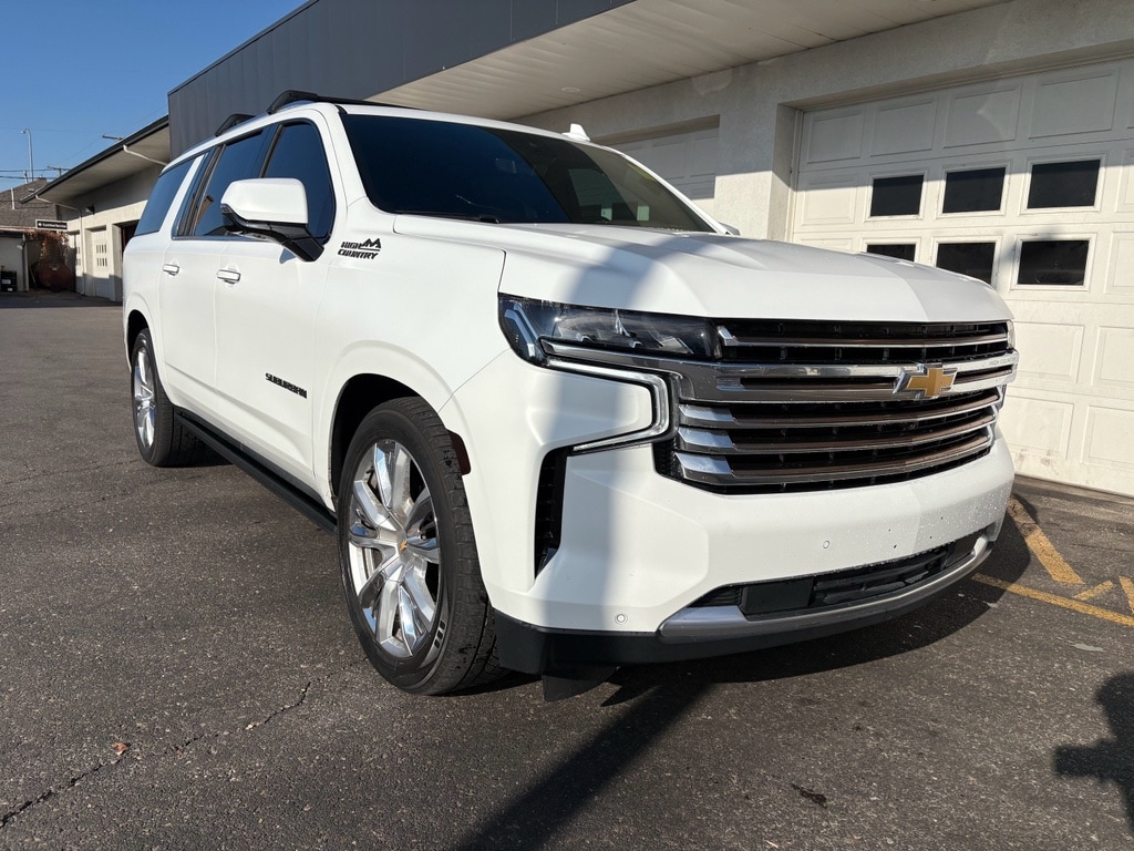 Max Trailering Package: Extra Capacity Cooling System. Advanced Trailering Package: Trailer Side Blind Zone Alert; Smart Trailer Integration Indicator; Integrated Trailer Brake Controller; Hitch Guidance with Hitch View. High Country Deluxe: Dual-Pane Power Panoramic Sunroof; Air Ride Adaptive Suspension; Power-Retractable Assist Steps. Preferred Equipment Group 3LZ: Bright Front and Rear Door Sill Plates; Memory Settings; Perforated Leather Seating Surfaces; Remote Start; 3rd Row 60/40 Power-Folding Split-Bench; Safety Alert Seat; Chrome Door Handles with Body-Color Strip; Hill Descent Control; 6.2L EcoTec3 V8 Engine; Rear Camera Mirror Washer; Inside Rearview Auo-Dimming Rear Camera Mirror; Heated Steering Wheel; LED Daytime Running Lamps; Rear Cross Traffic Alert; Wheels: 22" X 9" Sterling Silver Premium Painted; Driver and Front Outboard Passenger Airbags; Heated Driver and Front Passenger Seats; Wireless Charging; Front Bucket Seats; Universal Home Remote; Color-Keyed Carpeting Floor Covering; Heated 2nd Row Outboard Seats; Hands-Free Rear Power Programmable Liftgate; Chevrolet Infotainment 3 Premium System Radio; 2-Speed Active Electronic Autotrac Transfer Case; 1st and 2nd Row Color-Keyed Carpeted Floor Mats; Enhanced Driver Information Center; Floor Console; Lane Change Alert with Side Blind Zone Alert; Dual Exhaust System; SiriusXM Radio with 360L; HD Surround Vision; Heated and Ventilated Driver and Front Passenger Seats; Wrapped Steering Wheel; Power Tilt and Telescopic Steering Column; 15" Diagonal Multi-Color Head-Up Display; Rear Pedestrian Alert; Bose 10-Speaker Surround with CenterPoint; Magnetic Ride Control Suspension; Infotainment Display; Power Release 2nd Row Bucket Seats; Enhanced Automatic Emergency Braking; 275/50R22SL AS BW Tires; Outside Heated Power-Adjustable Mirrors. Rear Seat Media System. Power-Retractable Assist Steps. Dual-Pane Power Panoramic Sunroof. Air Ride Adaptive Suspension. **Equipment listed is based on original vehicle build and subject to change. Please confirm the accuracy of the included equipment by calling the dealer prior to purchase.**